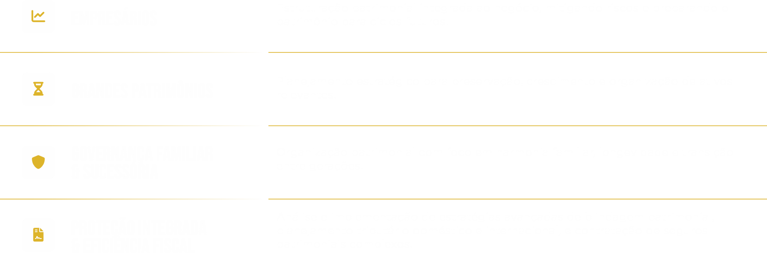 Soluções desenhadas para patrimônios relevantes e decisões de alta complexidade.